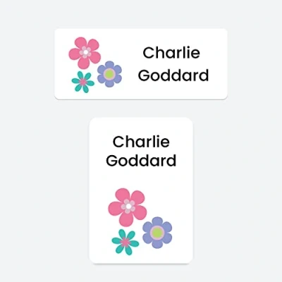 43 x No Iron Stick On Name Labels Waterproof Washable Great for Clothes, School Uniform, Equipment, Shoes and More. School, Nursery, Day Care, Hospital Range of Designs Available (Daisy)