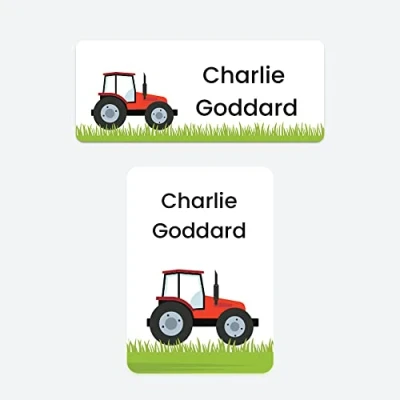 43 x No Iron Stick On Name Labels Waterproof Washable Great for Clothes, School Uniform, Equipment, Shoes and More. School, Nursery, Day Care, Hospital Range of Designs Available (Tractor)