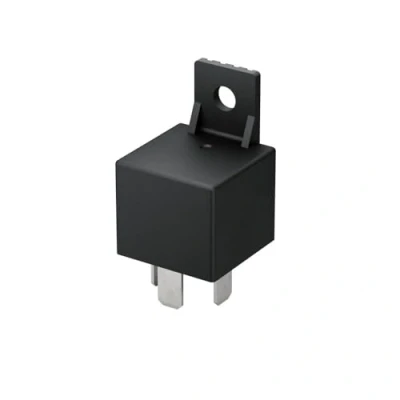 Mini relay - make contact relay 12 V, 4-pole, with holder and parallel resistor to coil Rated switching current: min. 30 A, max. 40 A (at 80 °C ambient temperature) Number of switching operations: min. 100,000 Temp. Range: 80°C Ohmic Load: 40A - Inductive Load: 35A - Capacitive Load: 30A - Capacity at 12V: 40A Prot.type (IP Code): 54 with resistor