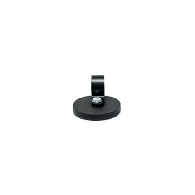 43mm dia x 6mm high Rubber Coated Cable Holding Magnet With 19mm Clip (Black) 8kg Pull (Pack of 1)