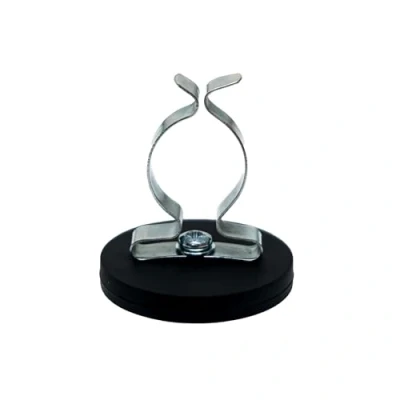 43mm dia x 6mm high Rubber Coated Cable Holding Magnet With 19mm Terry Spring Clip (Black) 8kg Pull (Pack of 2)