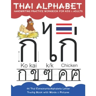 44 Thai Alphabet Handwriting Practice Workbook: Consonants Alphabets Letter Tracing Book with Words & Pictures for Kids and Adults
