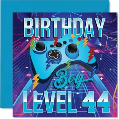 44th Birthday Cards for Men Gamer Level Happy Card 44 Year Old Man Son Friend Dad Colleague, 145mm Bday Greeting