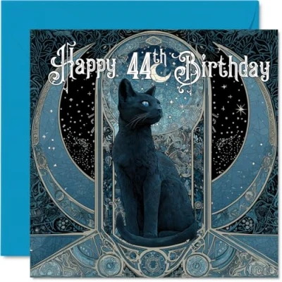 44th Birthday Cards for Men Women Tarot Card Cat Happy 44 Year Old Man Woman Brother Husband Nephew Friend, 145mm Bday Greeting