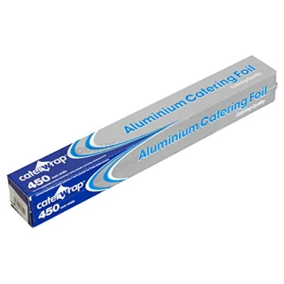 75 metre roll of 450mm wide aluminium kitchen foil. Suitable for covering meat, poultry and fish when roasting or cooking. Also ideal for lining grill pans, wrapping baked potatoes and covering steam puddings. Supplied in box which is also used to tear/cut the foil. Roll length: 75 metres. Roll width: 450mm.