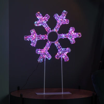 45cm Light up White Christmas Snowflake on Metal Stand with Twinkling Rainbow LEDs