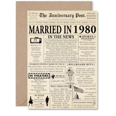 45th Anniversary Card for Men Women Newspaper Married in 1980 Happy 45 Year Wedding Partner Husband Wife Companion, A5 Anniversaries Greeting Cards