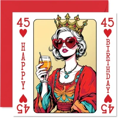45th Birthday Cards for Women Queen Playing Card Happy 45 Year Old Woman Daughter Neighbour Colleague Sister, 145mm Bday Greeting