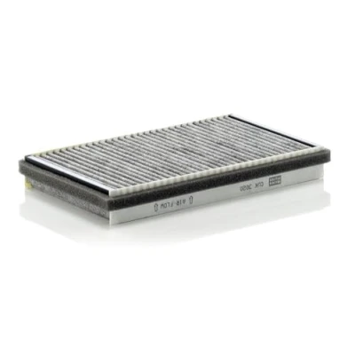 MANN-FILTER Cabin Air Filter CUK 3020 / Dimensions (mm): A = 266; B = 156; H = 34 / Premium Filter in Original Equipment Quality High-quality MANN-FILTER cabin filters with active carbon - nearly 100% protection from particles like pollen, diesel soot & tyre abrasion / Additional protection from harmful gases & unpleasant odour The trated highly-effective activated carbon gives protection against harmful gases such as ozone, nitrogen oxide or sulphur dioxide and eliminates unpleasant odours during the entire service interval Looking to find the correct filter? Select: brand, model, vehicle type, and engine type above to see which one fits your vehicle MANN+HUMMEL complies with REACH-regulation + supports the goal of Improved health and safety through the design, manufacturing, usage, disposal and recycling of our products