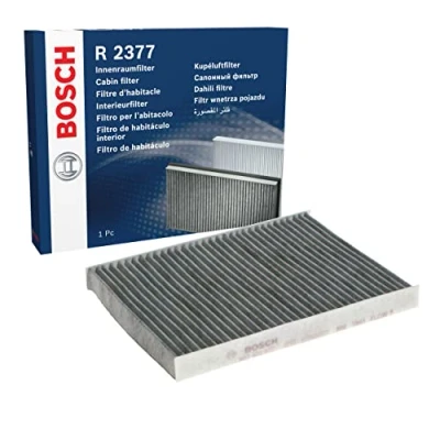 Breathe fresher air: The Bosch Activated Carbon Cabin Filter captures pollen and fine dust, ensuring cleaner and more pleasant air quality in the vehicle Against bad smells: Retains harmful gases such as ozone and exhaust fumes whilst neutralizing foul-smelling gases Helps demist your windscreen: The cabin filter reduces windscreen misting, so you can set off faster when starting your car in the morning Protects the air conditioner: The filter protects your car's air conditioning system from dust and dirt, helping it to stay cleaner Compatibility: Input your vehicle identification number into the parts' search function to find the right cabin air filter for your vehicle Installation manual included: Refer to the PDF instruction manual for guidance - All work should be carried out by trained professionals Scope of delivery: 1 Bosch R2377 Activated Carbon Cabin Filter - Packaging dimensions: Height 23 mm, Length 231 mm, Width 178 mm