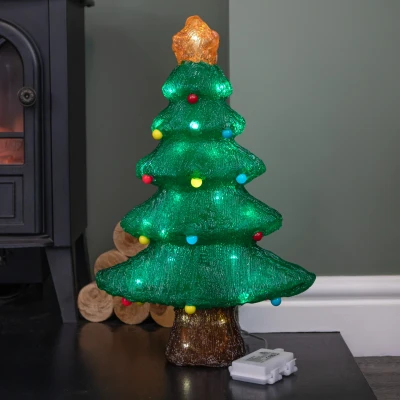 Bring the enchanting magic of Christmas to life with this Light up Christmas Bauble Tree. A stunning festive ornament designed to illuminate your home and garden. Whether placed on a mantelpiece to enhance your festive living room or in your garden to create a winter wonderland, this Light up Ice Bauble Tree adds a warm, magical glow wherever it’s displayed.. This beautifully crafted bauble tree features 60 cool white LEDs that create a dazzling display of soft, frosty lights. With its twinkling bauble function, the lights intermittently twinkle to add an extra layer of sparkle and charm to your holiday decor. Standing at a graceful 46 x 29cm, this tree has a compact yet eye-catching design, making it perfect for any Christmas display. Powered by 3 x AA batteries (not included), offering the freedom to place it anywhere without the need for cables or plugs. An auto timer ensures it turns on for 6 hours and off for 18 hours, helping to save energy and maintain a consistent glow throughout the festive season.. Suitable for indoor and sheltered outdoor use.. Product Specifications. Height: 46cm Width: 29cm. 60 Cool White LEDs. Requires 3 x AA Batteries. Timer Function 6 hours on 18 hours off
