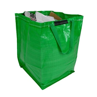 47 Litre Recycling Bag with Top Flap and Handles Tip Strap Laminated Wipe Clean Fabric PREMIUM GRADE Heavy Duty Woven PP (1 Bag, Green)