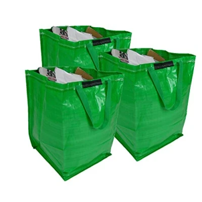 47 Litre Recycling Bag with Top Flap and Handles Tip Strap Laminated Wipe Clean Fabric PREMIUM GRADE Heavy Duty Woven PP (3 Bags, Green)