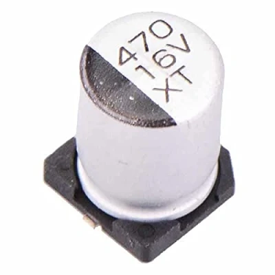 Aluminium Electrolytic Capacitors 470uF 16V Surface mount aluminium electrolytic capacitor featuring 20% tolerance and +105?C maximum operating temperature, suitable for high density PCB applications. Supplied on tape packaging Quantity: 10