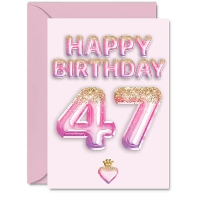 47th Birthday Cards for Men Women Pink & Purple Glitter Balloons Happy Card 47 Year Old Man Woman Dad Cousin Colleague Husband, A5 Bday Greeting