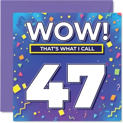 47th Birthday Cards for Women Men WOW Thats What I Call Happy Card 47 Year Old Woman Man Dad Cousin Colleague Husband, 145mm Bday Greeting