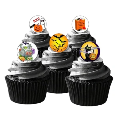 48 Halloween Themed Edible Wafer Paper Round Cake Toppers Decorations