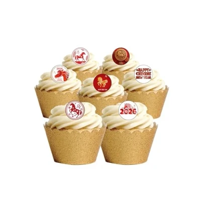 48 Round Chinese New Year 2026 Year Of The Horse Edible Wafer Paper Cake Toppers REQUIRES CUTTING OUT before being placed on your cakes Printed on quality wafer paper with edible inks The images REQUIRE CUTTING OUT with sharp scissors and are then ready to place straight on your cakes Fully Edible - Wafer Paper Ingredients: Water, Sunflower Oil and Potato Starch, Manufacturer: Orange Trading Dartmouth Ltd