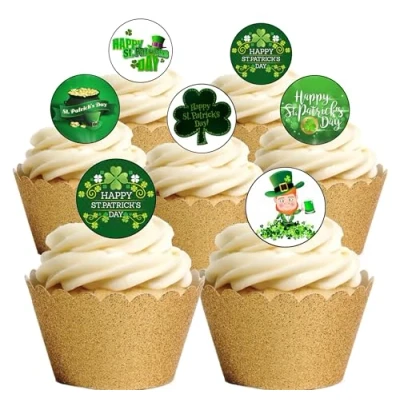 48 St Patricks Day themed Edible Wafer Paper Cake Toppers Decorations Images As shown in the Picture - You will receive 48 Circles approx 2.5cm diameter These toppers require cutting out with sharp scissors and are then ready to place straight on your cakes St Patricks Day themed Images printed with edible inks - Perfect for Parties Fully Edible - Wafer Paper ingredients - Water, Sunflower Oil and Potato Starch, Manufacturer: Top That
