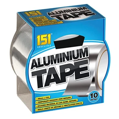 WATER & HEAT RESISTANT: 151 Adhesives Aluminium Foil Tape, both water & heat resistant suitable for pipe lagging, duct sealing, heating and ventilation. AIR & WATERTiGHT SEAL: 151 Adhesives Aluminium Foil Tape, ideal for sealing joints/seams against leakage, moisture and vapour. Ideal for holding or masking applications requiring a foil backing protection. STRONG & DURABLE : 151 Adhesives Aluminium Foil Tape, bonds to a wide range of surfaces materials, wood, metal and glass. Suitable for indoor and outdoor use ABOUT THE PRODUCT. Ready to use 151 Aluminium Tape roll, 48mm x 10 metres. Store at room temperature, Manufacturer: 151 Products Limited