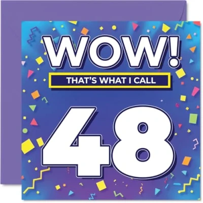 48th Birthday Cards for Men Women WOW Thats What I Call Happy Card 48 Year Old Man Woman Cousin Sister Dad Colleague, 145mm Bday Greeting
