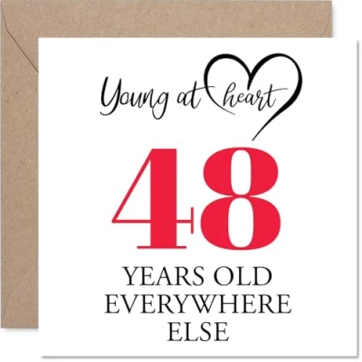 48th Birthday Cards for Women Men Young at Heart Happy Card 48 Year Old Woman Man Auntie Wife Friend Husband, 145mm Bday Greeting