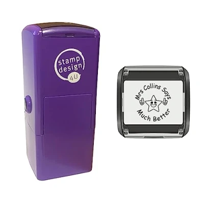 4933 25mm Round School Education Teacher Personalised Custom Made Self Inking Rubber Stamp *with Your Name and Two Lines of Text with a Happy Star Logo Design in Black Ink*