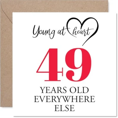49th Birthday Cards for Men Women Young at Heart Happy Card 49 Year Old Man Woman Wife Neighbour Auntie Friend, 145mm Bday Greeting