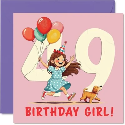 49th Birthday Cards for Women Balloon Girl Happy Card 49 Year Old Woman Wife Daughter Sister Colleague, 145mm Bday Greeting