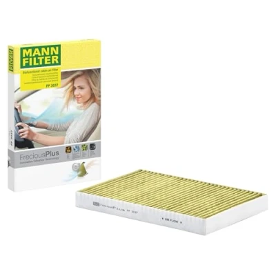 MANN-FILTER Cabin Air Filter FP 3037 / Dimensions (mm): A = 300; B = 204; H = 30 / Premium Filter in Original Equipment Quality Biofunctional MANN-FILTER FreciousPlus cabin air filters - nearly 100% protection against nitrogen oxides, dust, allergens and mould - harmful gases and unpleasant odours are also eliminated and virus aerosols filtered The three-layer filter technology absorbs almost 100% of allergens, reduces the growth of molds and bacteria by more than 98% and stops fine dust almost completely Looking to find the correct filter? Select: brand, model, vehicle type, and engine type above to see which one fits your vehicle MANN+HUMMEL complies with REACH-regulation + supports the goal of Improved health and safety through the design, manufacturing, usage, disposal and recycling of our products