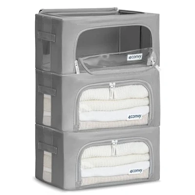 4CONVY Solid, Foldable Clothes Storage Box with Zipper [2024 UPGRADED MATERIAL] Bag for Duvets, Clothes, Bedding Garments Window
