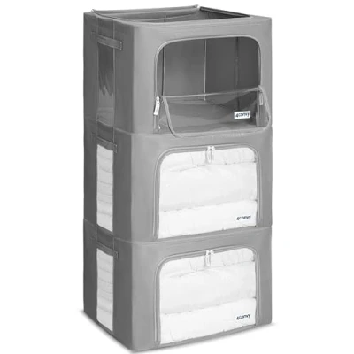 4CONVY Solid, Foldable Clothes Storage Box with Zipper [2024 UPGRADED MATERIAL] Bag for Duvets, Clothes, Bedding Window