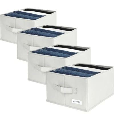 4CONVY Trousers Organiser for Wardrobe [2024 UPGRADED MATERIAL] Fixed Storage Box with Large Compartments Foldable Jeans, Shirts Pack of 4