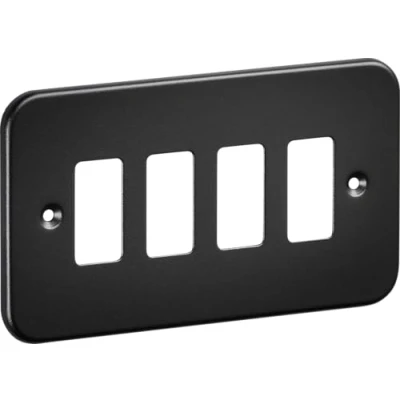 Contemporary Metalclad Design: Crafted from heavy-duty metal with a textured sand black matt finish, bringing a sleek, modern aesthetic ideal for offices, workshops, commercial spaces, and stylish loft conversions. 4-Gang Grid Faceplate: Provides capacity for four grid modules, allowing you to create tailored switching and control configurations to suit modern electrical setups. Compatible with Grid Components: Designed for use with 1 × GDF002F (sold separately), enabling versatile customisation within the Metalclad Grid System. For Metalclad Grid Systems Only: Ensures a secure and professional finish when used exclusively with the Metalclad Grid System., Manufacturer: Knightsbridge
