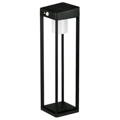 PORTABLE SLEEK SOLAR LANTERN: Modern, portable solar-powered lantern ideal for outdoor use—alfresco dining spaces, patios, pergolas, and more. Lightweight and wire-free design MOTION SENSORED SOLAR GARDEN LIGHT: Equipped with a built-in PIR motion sensor offering a 6–8 metre range and 110° wide detection angle for automatic lighting when movement is detected—perfect for added security and energy efficiency ANTHRACITE FINISH: This outdoor light, crafted from powder-coated die-cast aluminium in a black colour, ensures maximum durability and offers the perfect lighting solution for outdoor spaces DUAL CHARGING ADJUSTABLE BRIGHTNESS LAMP: Charge via solar power offering 10–12 hours of illumination after a full charge (5–8 hours charge time). Emits a soft, 3000K warm white light with up to 20,000 hours of LED SUITABLE FOR OUTDOOR USE: Built to last with an IP54 weather resistance rating. Stands up to rain, snow, frost, and sleet with ease
