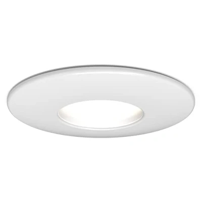 FIRE-RATED IP65 ROUND CEILING DOWNLIGHT: This 4lite round fire-rated indoor downlight with IP65 rating in matt white is a contemporary design made from iron INTERIOR LED SPOTLIGHT: This compact fire-rated IP65 spotlight looks great in all indoor spaces perfect for shallow ceiling voids MATT WHITE FINISH: Made from iron, this matt white downlight provides the perfect lighting solution for all interior areas SUITABLE FOR INDOOR USE: This fire-rated downlight is IP65 certified ensuring outstanding durability and versatile installation options. Its robust design makes it suitable for bathrooms, kitchens and other moisture-prone areas REQUIRES GU10 BULB: This spotlight requires a GU10 halogen or LED bulb and features a twist-lock retaining ring for ease of bulb replacement