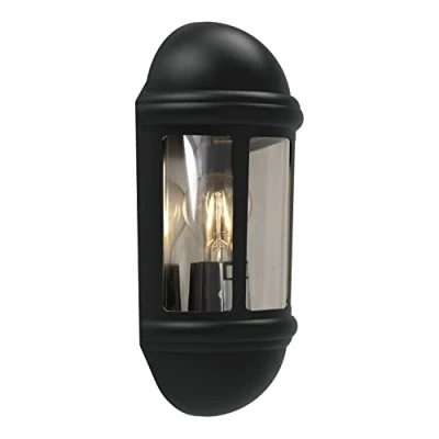 TRADITIONAL OUTDOOR HALF LANTERN WALL LIGHT: This Half lantern outdoor wall light features a contemporary twist on a traditional design and enhances any outdoor wall with its ambient glow, as light beautifully filters through the clear polycarbonate panels, creating a perfect and inviting atmosphere OUTDOOR EXTERIOR WALL LAMP: This outdoor wall lamps combine durability with a sleek design, offering weather-resistant materials and stylish illumination to enhance the ambient and security of any exterior space BLACK FINISH: This black outdoor light, crafted from textured polycarbonate, ensures maximum durability and offers the perfect lighting solution for outdoor spaces SUITABLE FOR OUTDOOR USE: This weather-proof garden light is IP65 rated, ensuring exceptional durability and flexibility with a wide range of installation options REQUIRES E27 BULB: This half lantern wall light requires a E27 bulb