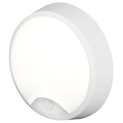 4lite Pylus Outdoor Round Wall Light (White) 1100lm Motion Sensor Bulkhead IP54 LED Integrated Exterior 4L2/3215/PIR 4Yr Guarantee