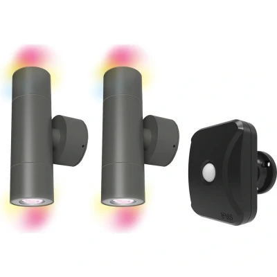 4lite Wiz Connected Exterior LED IP54 Up & Down Light inc GU10 Smart Bulb 2 Pack + Outdoor PIR Sensor