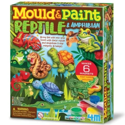 MOULD & PAINT KIT FOR KIDS: Mould & paint your own reptiles & amphibians with our craft kit; create 6 fun designs using the materials provided; educational fact cards support STEM development MAKE FUN MAGNETS OR BADGES: Children can craft wild animal-themed fridge magnets & pin-badges for personalised arts gifts or keepsakes; a lovely creative activity for boys, girls & home craft sessions COMPLETE CRAFT SET: Featuring plaster powder, mould with 6 wild designs, 6 coloured paints, 6 fact cards, paint brush, 2 pins for badges, magnetic fridge strip & easy instructions to support children's confidence & creativity SKILL-BUILDING ACTIVITY: Kids can develop fine motor skills, hand-eye coordination & colour recognition with our arts kit; a fun DIY crafts project that encourages artistic expression & family bonding ANIMAL ARTS GIFT FOR KIDS: The ideal art present for kids aged 5+ who love animals & enjoy arts & crafts; our engaging mould & paint activity provides unique results every time