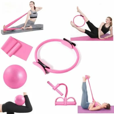 4PC ELITE Pilates KIT Pink BAR, YOGA Band, Pull Up Kit, BOOTY Bands, BODY TRIMMER, Waist & Ab Shaper Sit ROPE (4PC Set)