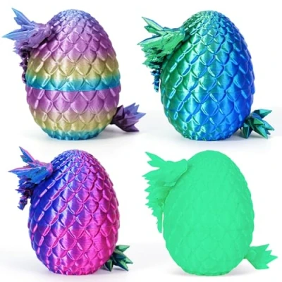 4PCS 3D Printed Dragon Eggs with Inside Articulated Crystal Mystery Egg Fidget Toy Surprise Animals Set (Multicolor2 4pcs)