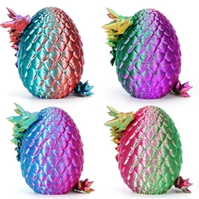 4PCS 3D Printed Dragon Eggs with Inside Articulated Crystal Mystery Egg Fidget Toy Surprise Animals Set (Multicolor4 4pcs)