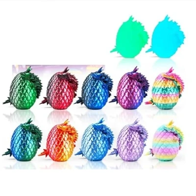4PCS 3D Printed Dragon Eggs with Inside, Easter Eggs, Articulated Crystal Dragon, Mystery Egg Fidget Toy, Basket Stuffers Animals Set (NEW A)