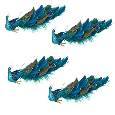 4Pcs Artificial Peacock with Clip,Simulation Christmas Tree Festival Supplies,Christmas Ornaments Bird Clip On Ornament,Long Tail Feather Phoenix Ornament