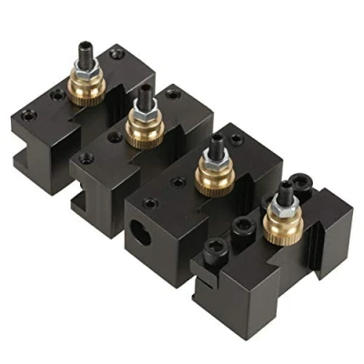 High strength and hardness, very easy to operate It implements external cutter installation, and features high precision and high rigidity. Tool holder with adjustment screw nut, adjust the height of tool, shorten the loading time. They can be combined with the small carriage, can handle all kinds of angle workpiece. Wide fitting, this set of tool post and cutter holders can be used for many type of mini lathes.