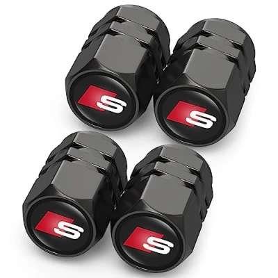 4PCS Tyre Valve Caps, Car Caps Compatible with Audi S Line S1 S2 S3 S4 S5 S6 S7 S8 SQ2 SQ5 SQ7 SQ8, Leak Proof Dust for Tyres