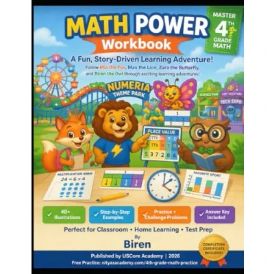 4th Grade MATH POWER Workbook: Place Value, Operations, Fractions, Decimals, Measurement & Data — 8 Complete Chapters with Illustrations