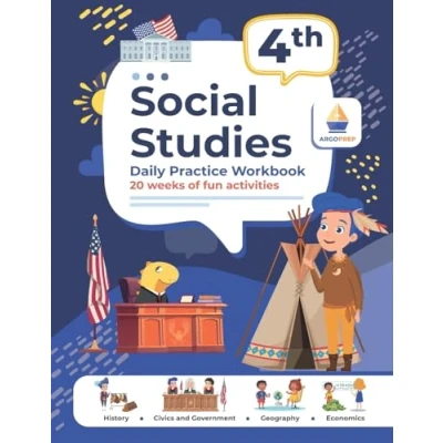 4th Grade Social Studies: Daily Practice Workbook 20 Weeks of Fun Activities History Civic and Government Geography Economics + Video Explanations for Each Question