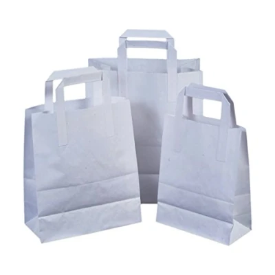 4x The Paper Bag Company 18 x 23 9 cm Carrier Bags with Flat Handles, Pack of 15, White